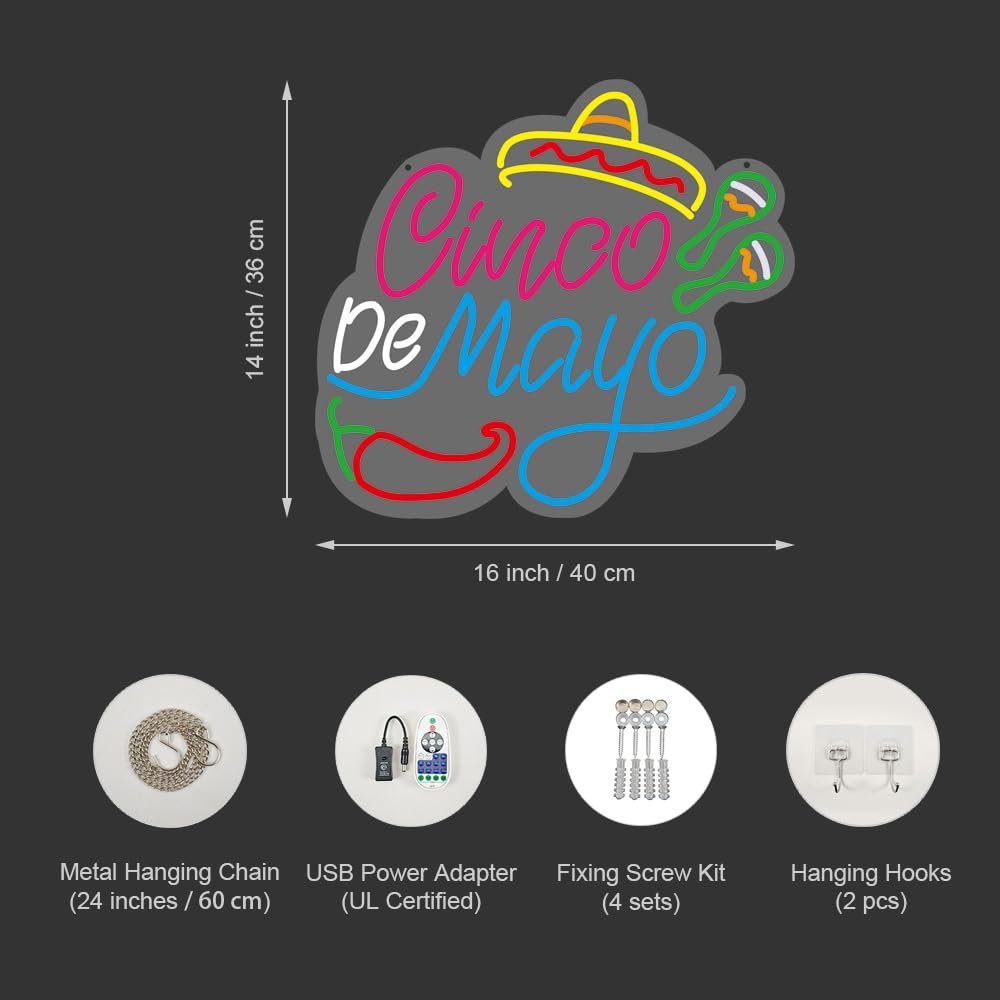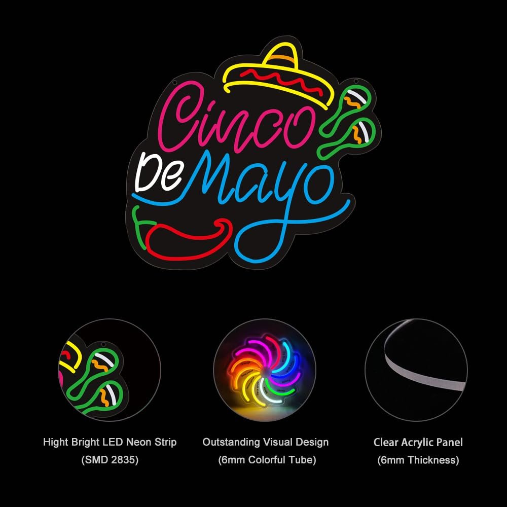 - ใVibrant Cinco de Mayo DecorใIlluminate your space with this festive “Happy Cinco de Mayo” neon sign. Perfect for adding a lively and colorful touch to your home, bar, or party venue, it’s ideal for Cinco de Mayo celebrations, Mexican-themed events, and fiesta gatherings. This eye-catching decor piece brings the spirit of Mexico to your festivities, creating a joyful and memorable atmosphere for all your guests.