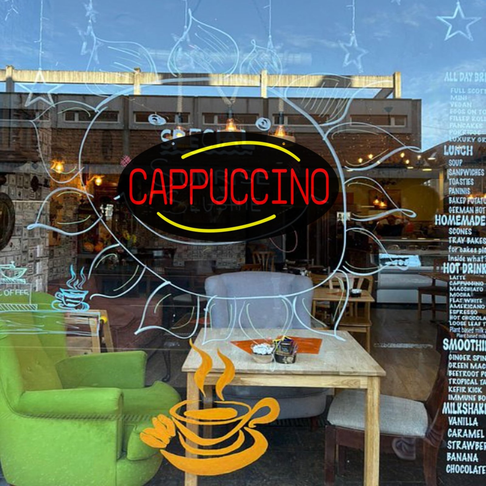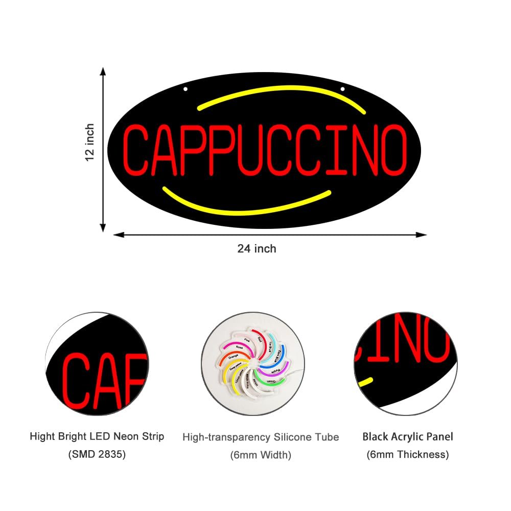• ใ€Attention-Grabbingใ€‘This LED Cappuccino Neon Sign is bright and eye-catching, suitable for Coffee Bar, Brunch Spot, Coffee Corner, Hotel Breakfast Lounge, Bookstore Cafรฉ and so on. Ensure your business stands out from the competition and attracts potential customers.
