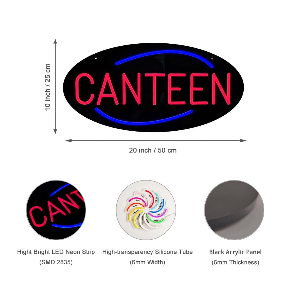 - ใAttention-GrabbingใThis LED Cateen Neon Sign is bright and eye-catching, suitable for all sorts of Canteen like in School/Office/Hospital/Factory/Airport. Make sure your business stands out from the competition and attracts potential customers.