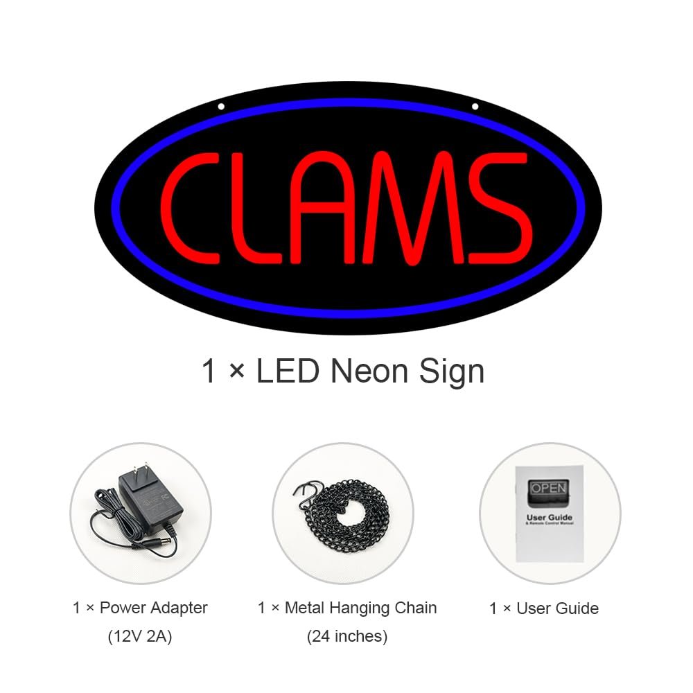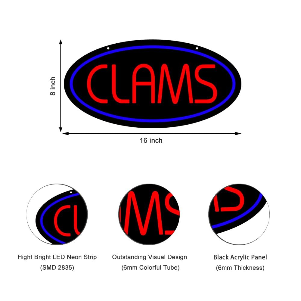 - 【Attention-Grabbing】This LED Clams Neon Sign is bright and eye-catching, suitable for Clam Bar, Seafood Market, Seafood Buffet, Grill Restaurant, Clam Festival Booth, Seafood Takeout and so on. Make sure your business stands out from the competition and attracts potential customers.