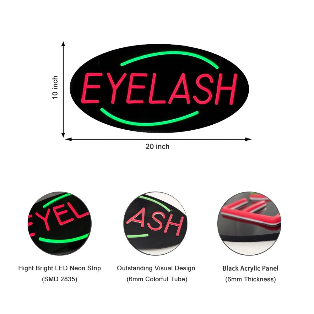 - ใAttention-GrabbingใThis LED Eyelash Neon Sign is bright and eye-catching, suitable for eyelash studio, makeup studio, lash bar, beauty center, cosmetic shop, lash lift spot, pop-up beauty booth, and more. Ensure your business stands out from the competition and attracts potential customers.