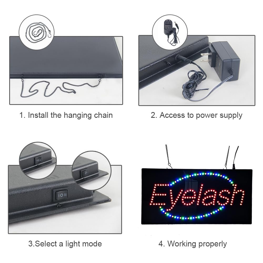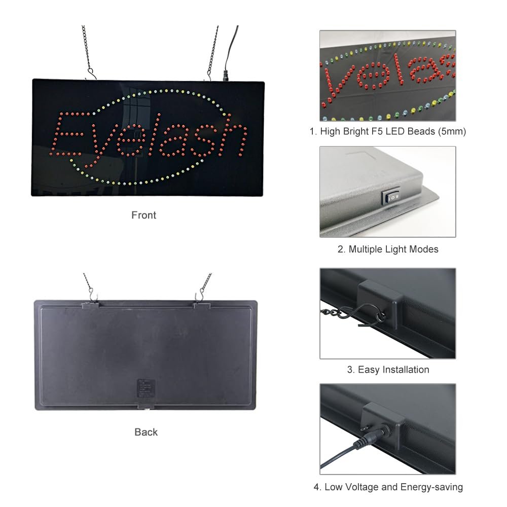 - ใAttention-Grabbing ใThis LED Eyelash Sign is bright and eye-catching, suitable for lash studios, beauty salons, makeup rooms, esthetician rooms, brow & lash studios, day spas, and other beauty and wellness spaces. Ensure your business stands out from the competition and attracts potential customers.