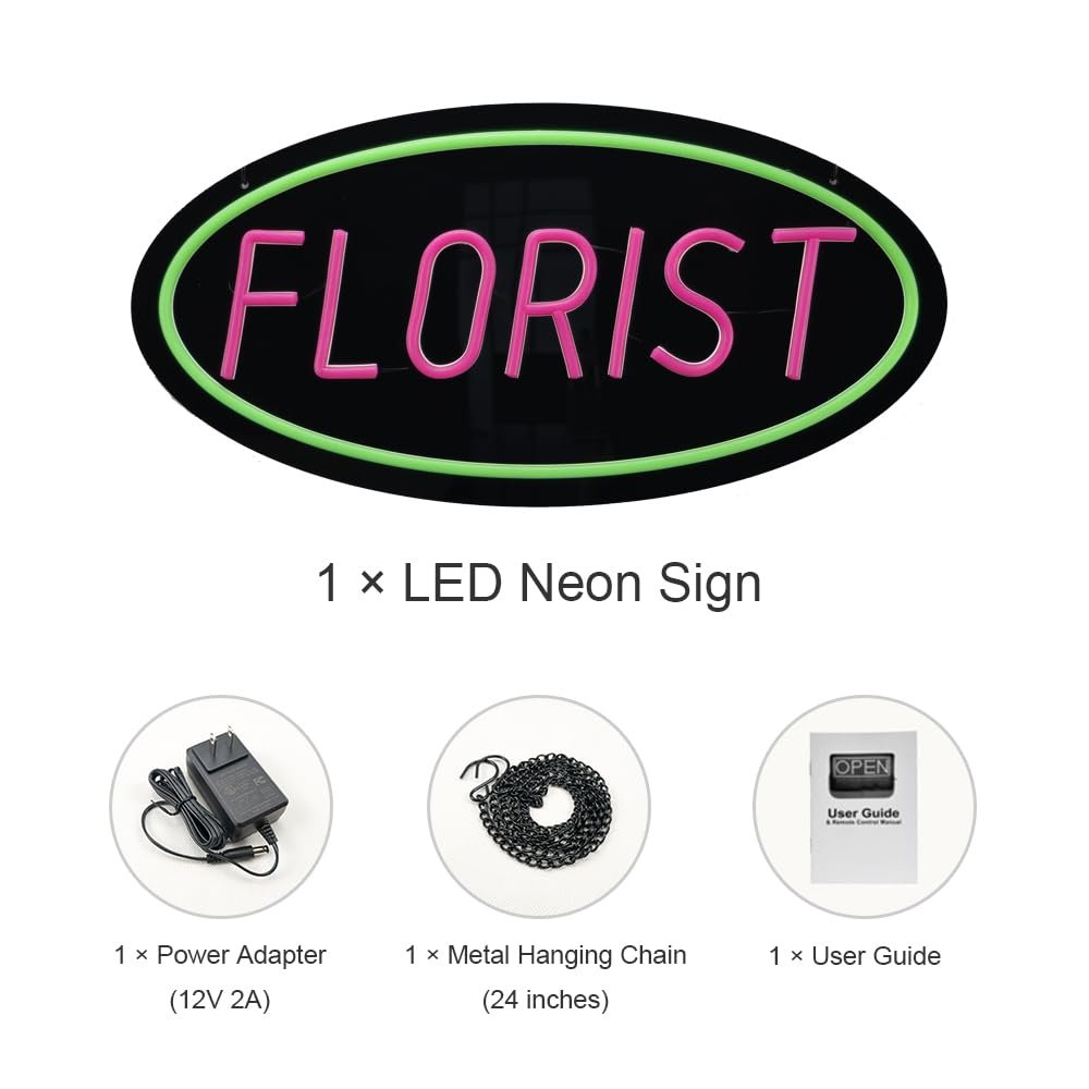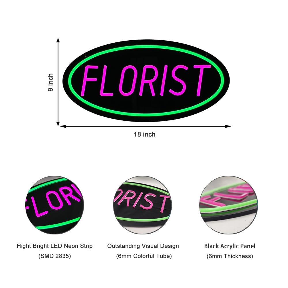 - ใAttention-GrabbingใThis LED Florist Neon Sign is bright and eye-catching, suitable for wedding planning, event planning, garden center, hotel lobby, farmers market, and more. Make sure your business stands out from the competition and attracts potential customers.
