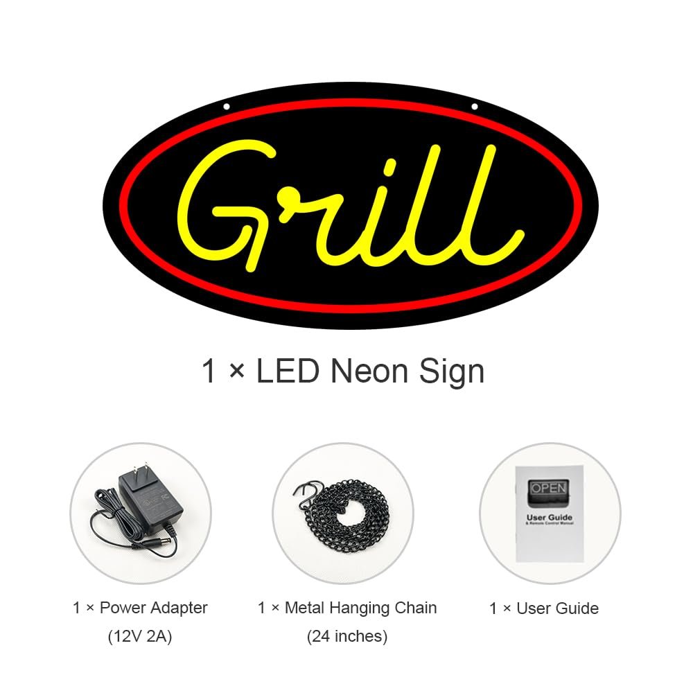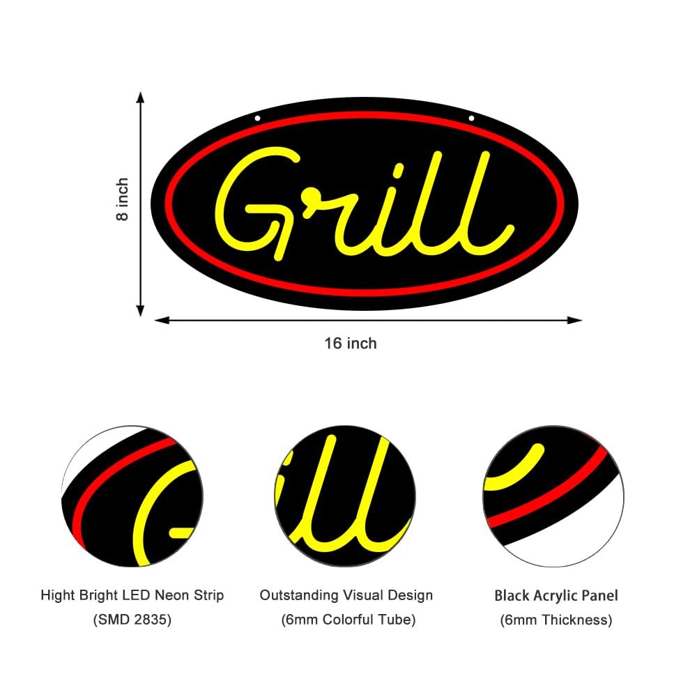 • ใ€Attention-Grabbingใ€‘This Grill neon sign is bright and eye-catching, suitable for American BBQ Grill, Outdoor Grill, Backyard Grill Area, Smokehouse Grill, Grill Fast Food, Food Court Grill Stall, Sports Bar and Grill, Barbecue Joint, Seafood Grill Etc. Ensure your business stands out from the competition and attracts potential customers.