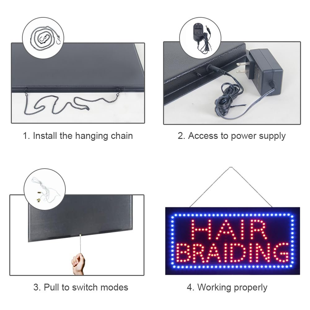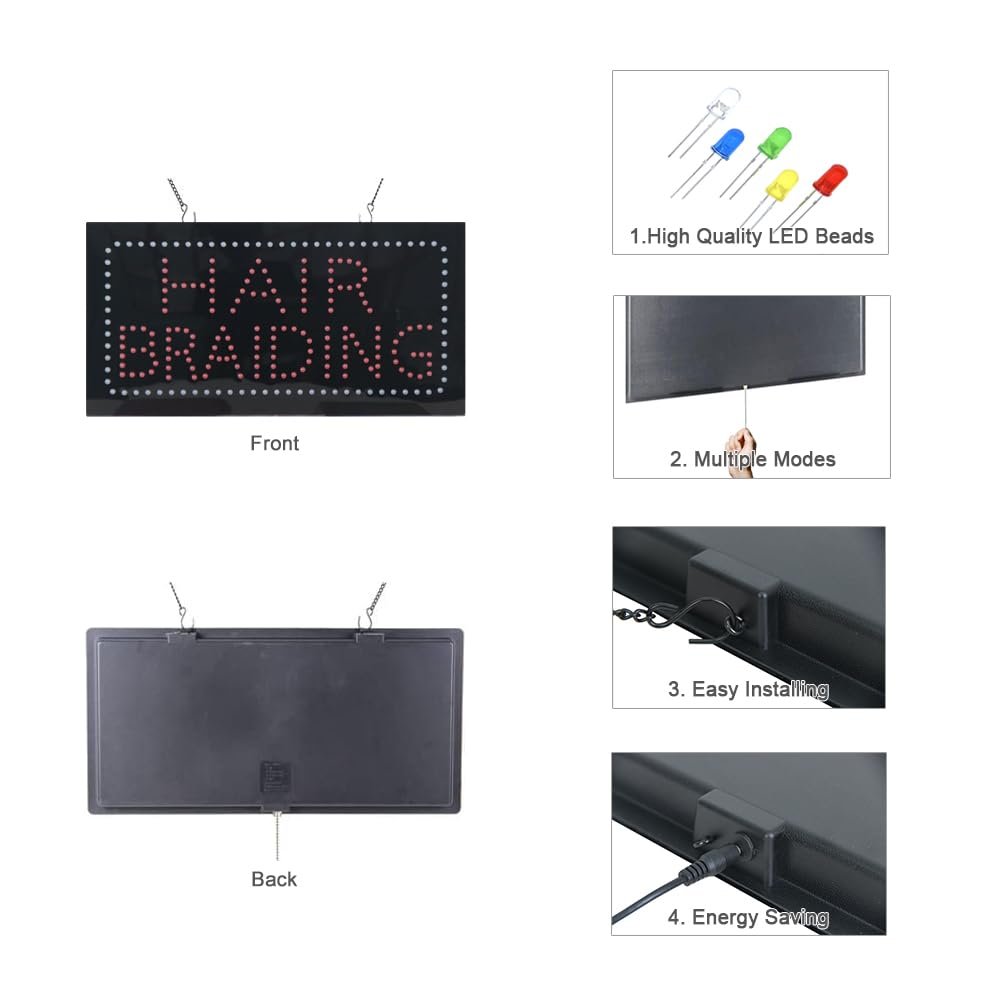 - ใAttention-GrabbingใThis LED Hair Braiding Sign is bright and eye-catching, suitable for hair Braiding salons, beauty salons. Make your business stand out from the competition and attract potential customers.