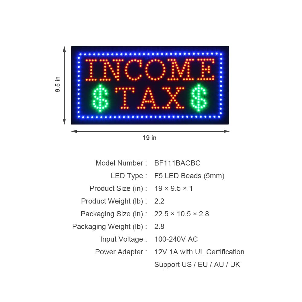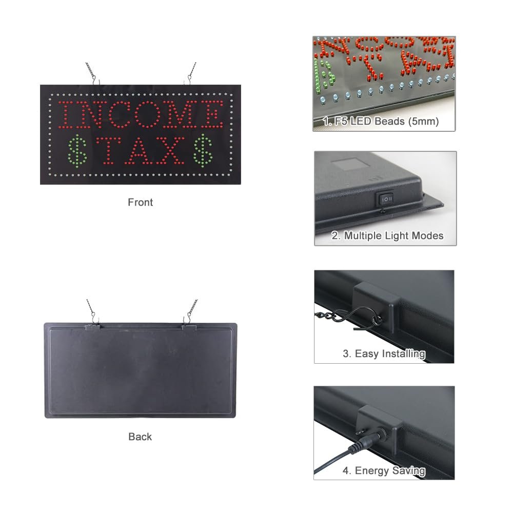 - ใAttention-GrabbingใThis LED Tax Service Sign is brightness and eye-catching, suitable for tax service office, accounting firm, financial service center, notary office, and insurance agency. Make your business stand out from the competition and attract potential customers.