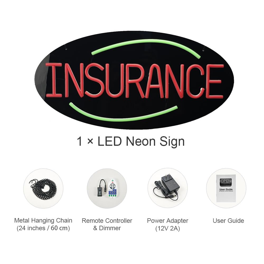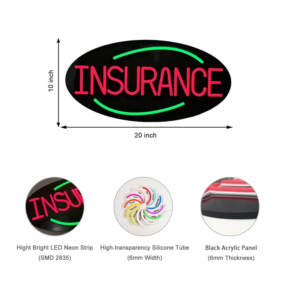 - ใAttention-GrabbingใThis LED Insurance Neon Sign is bright and eye-catching, suitable for Life Insurance Office, Car Insurance Agency, Health Insurance Agency, Home Insurance Agency, Business Insurance Agency, Insurance Broker, Insurance Consultancy, Online Insurance Service and so on. Make sure your business stands out from the competition and attracts potential customers.
