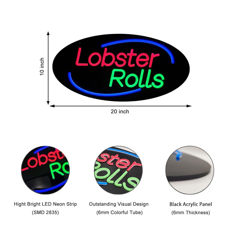 • ใ€Attention-Grabbingใ€‘This LED Lobster Roll Neon Sign is bright and eye-catching, suitable for seafood restaurant, coastal grill, food truck, beachside eatery, clam bar, and more. Make sure your business stands out from the competition and attracts potential customers.