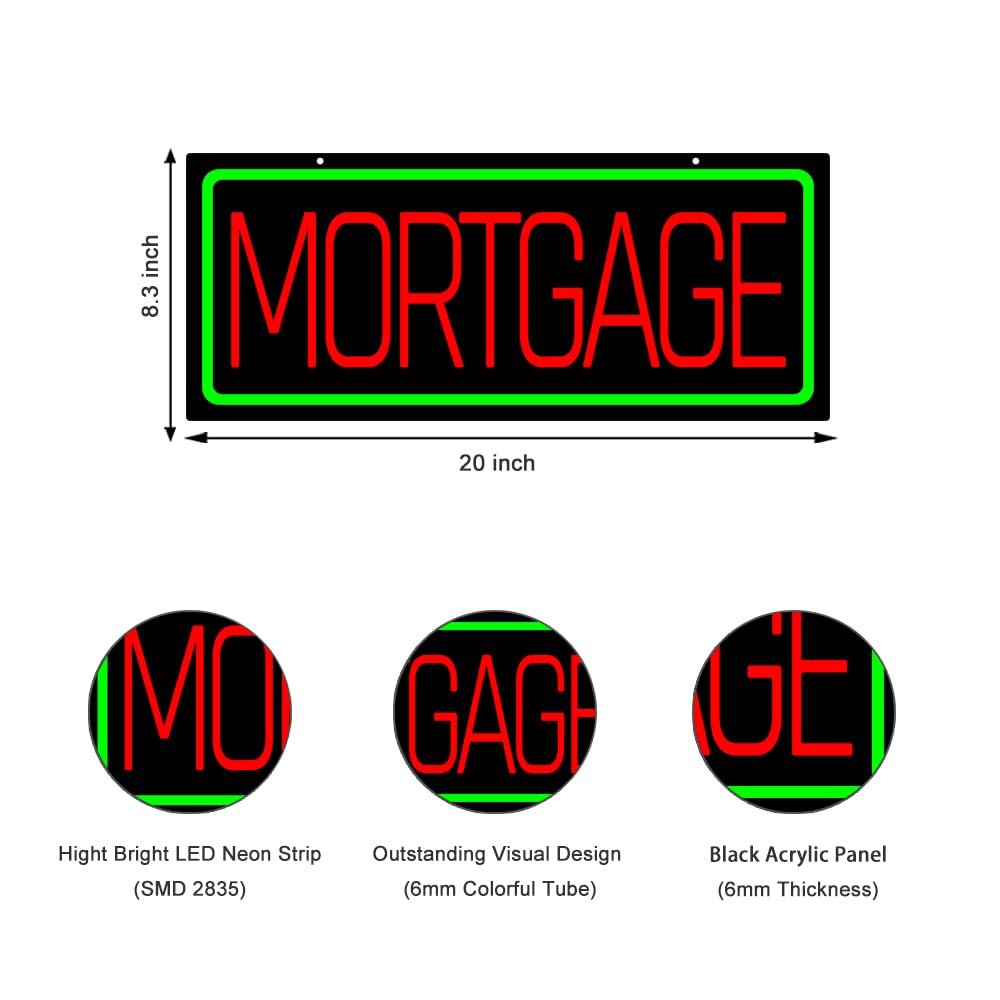 - 【Attention-Grabbing】This LED MORTGAGE Neon Sign is bright and eye-catching, suitable for Loan Service Center, Real Estate Office, Mortgage Lending Office, Credit Institutions or Banks, Credit Counseling Services and so on. Make sure your business stands out from the competition and attracts potential customers.