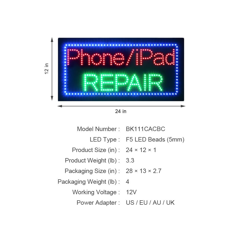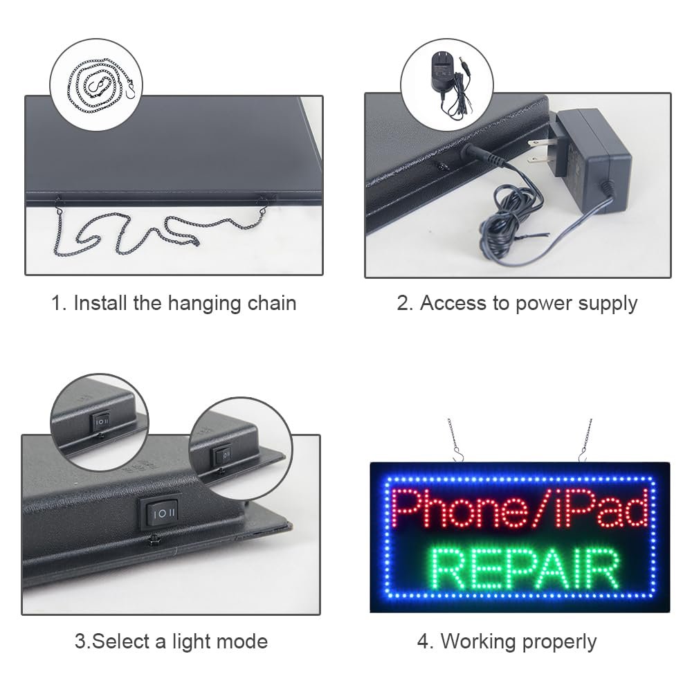 - ใAttention-GrabbingใThis LED Phone Pad Repair Sign is bright and eye-catching, suitable for phone repair shop, tablet repair center, electronics kiosk, gadget service booth, and mobile device store. Ensure your business stands out from the competition and attracts potential customers.