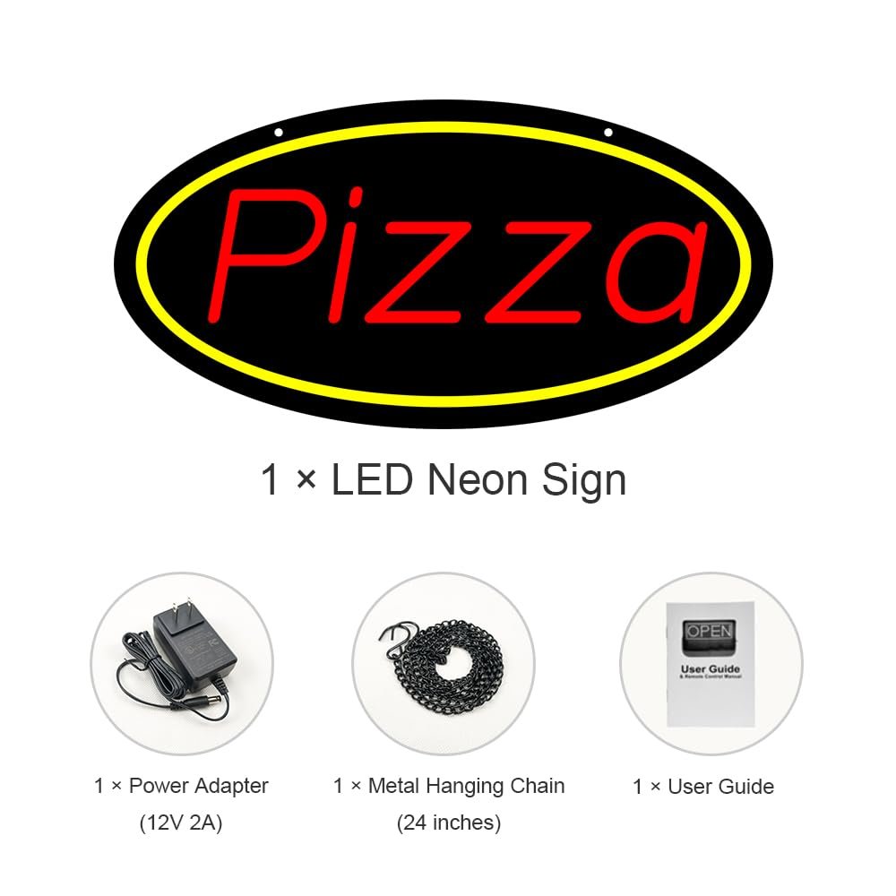 - ใAttention-GrabbingใThis LED Pizza Neon Sign is bright and eye-catching, suitable for Fast Food Restaurant, Takeout Pizza, Italian Restaurant, Food Court, Home Delivery Pizza Service, Party Catering, Buffet Restaurant and so on. Make sure your business stands out from the competition and attracts potential customers.