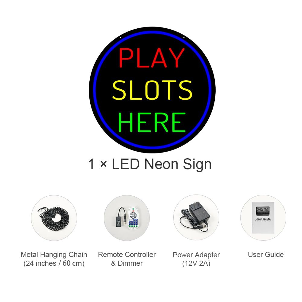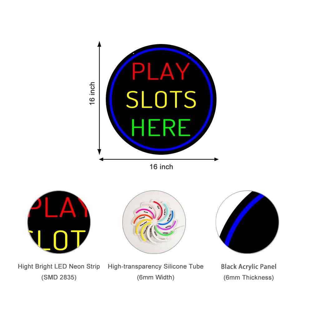 LED Play Slots Here Neon Sign, 16″ร—16″