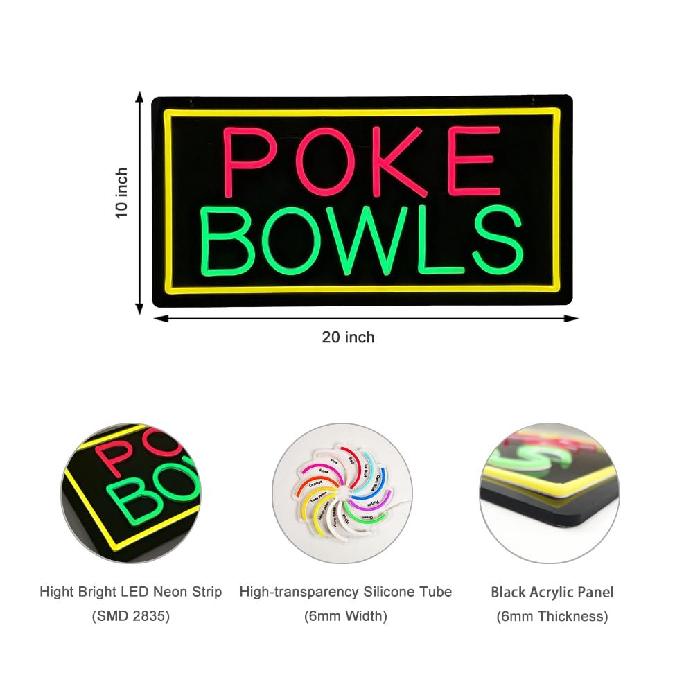 - ใAttention-GrabbingใThis LED POKE BOWLS Neon Sign is bright and eye-catching, suitable for Seafood Restaurant, Sushi Restaurant, Japanese Fusion Restaurant, Healthy Fast Food Restaurant, Food Court Stall, Quick Service Restaurant (QSR), Coastal Snack Bar and so on. Make sure your business stands out from the competition and attracts potential customers.