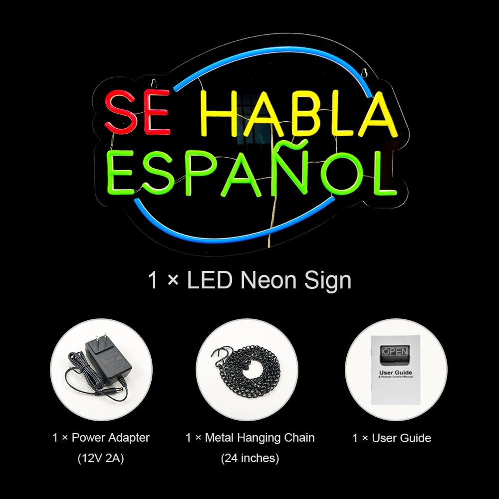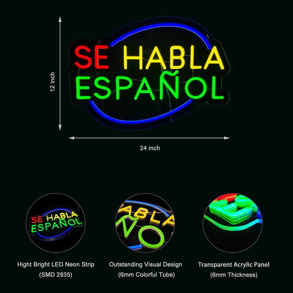 - γAttention-GrabbingγThis LED Se Habla EspaΓ±ol neon sign is bright and eye-catching, suitable for banks, restaurants, retail stores, insurance agencies, clinics, hospitals, law offices, real estate agencies, accounting firms, educational institutions, tax preparation services and so on. Make sure your business stands out from the competition and attracts potential customers.