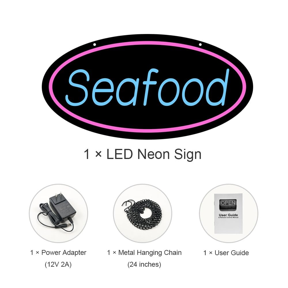 - ใAttention-GrabbingใThis LED Seafood Neon Sign is bright and eye-catching, suitable for seafood market, oyster bar, fish market, seafood takeout, grill or bbq restaurant, and more. Make sure your business stands out from the competition and attracts potential customers.