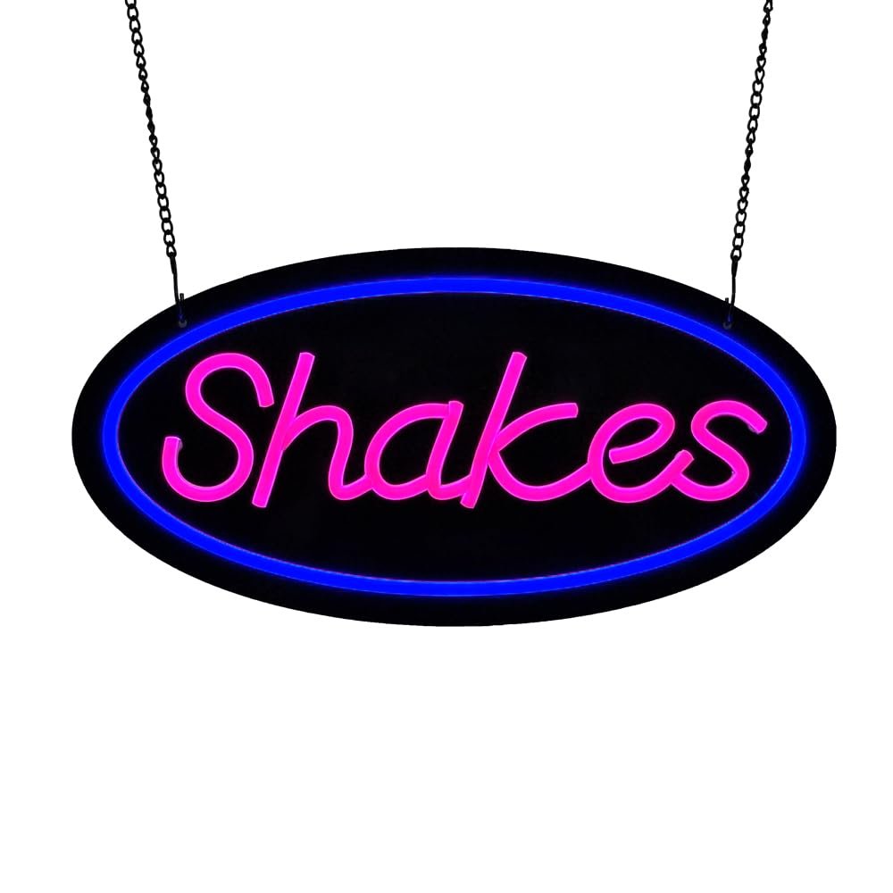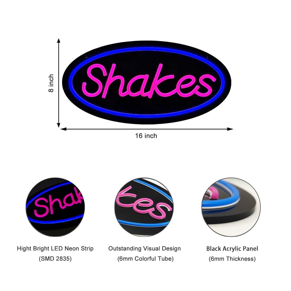 • ใ€Attention-Grabbingใ€‘This LED Shakes Neon Sign is bright and eye-catching, suitable for smoothie shop, milkshake bar, juice bar, food truck, diner, cafรฉ, dessert shop, and places selling shakes. Make sure your business stands out from the competition and attracts potential customers.