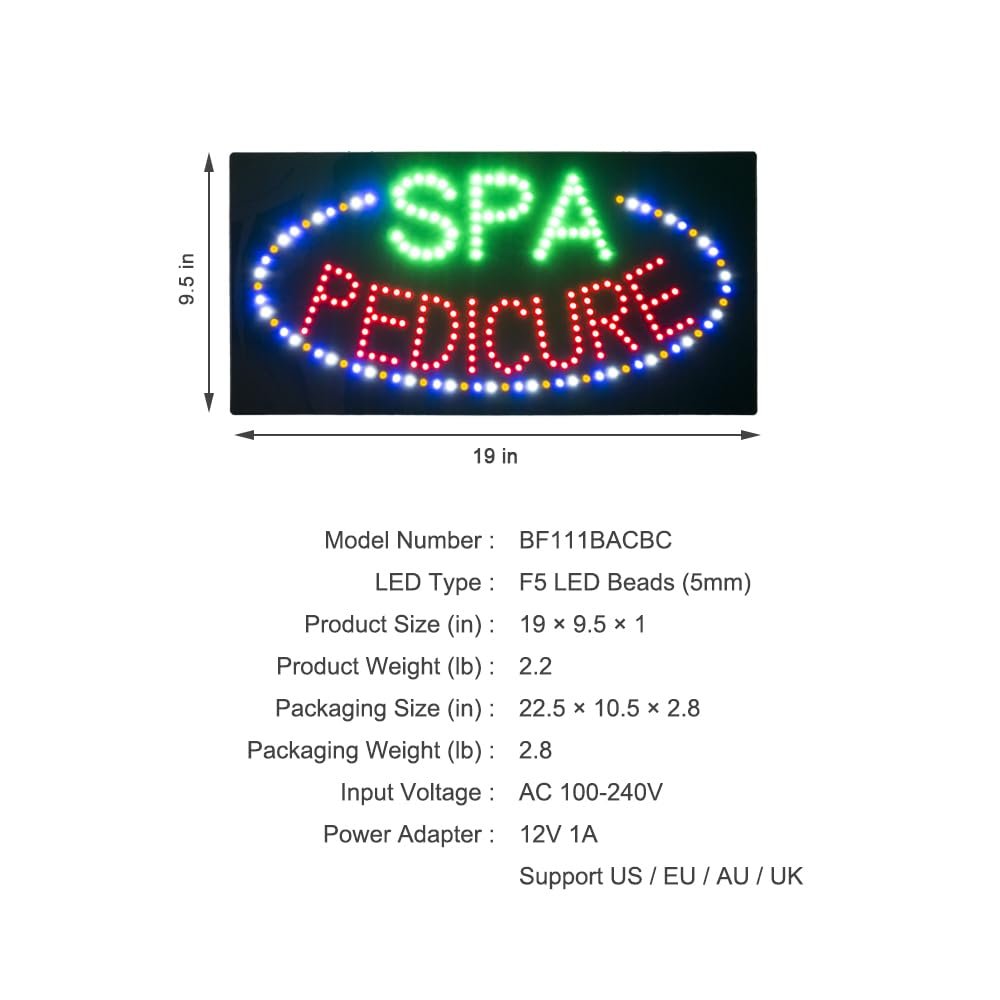 LED SPA Pedicure Sign, 19″x9.5″