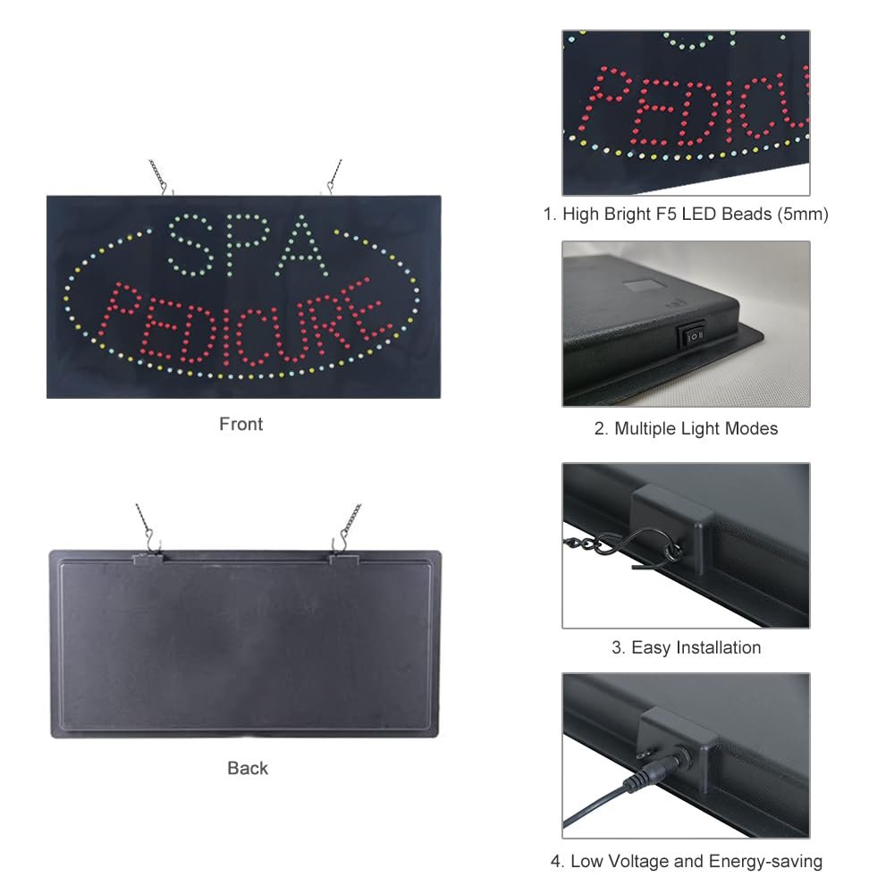 - ใAttention-GrabbingใThis LED SPA Pedicure Sign is bright and eye-catching, suitable for spa, pedicure, massages, and other beauty salons. Ensure your business stands out from the competition and attracts potential customers.