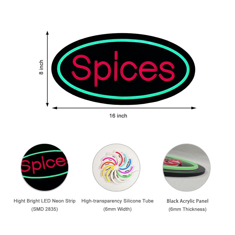- ใAttention-GrabbingใThis LED Spices Neon Sign is bright and eye-catching, suitable for Spice Stand, Farmersโ Market, Gourmet Store, Culinary School and so on. Make sure your business stands out from the competition and attracts potential customers.