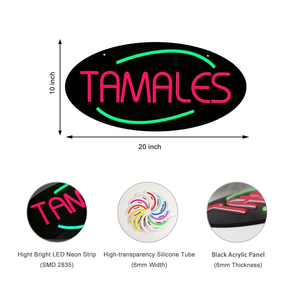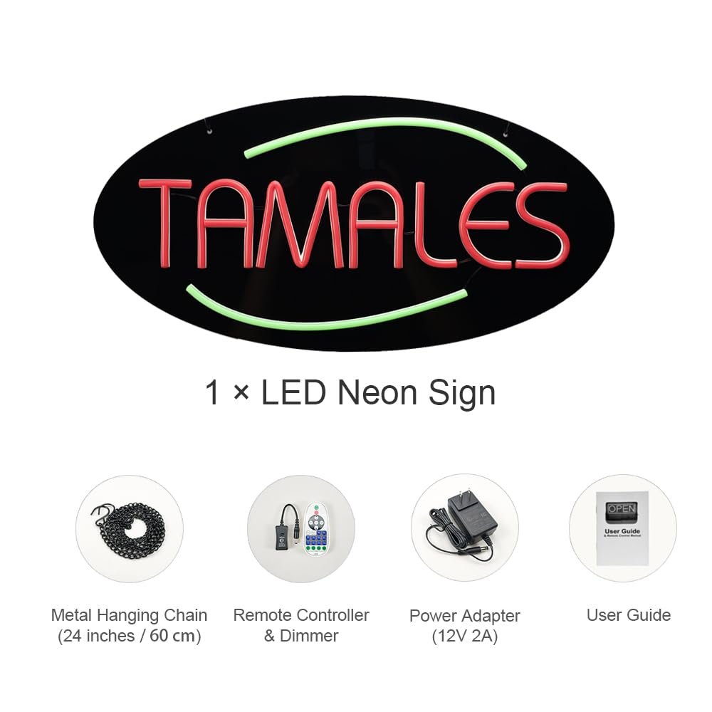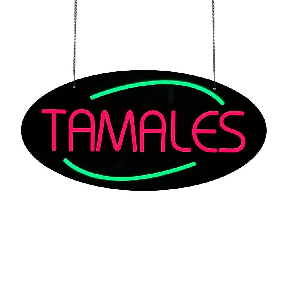 - ใAttention-GrabbingใThis LED Tamales Neon Sign is bright and eye-catching, suitable for food truck, latin grocery store, family gatherings, festival stall, breakfast lunch restaurant, farmers’ market, and more. Make sure your business stands out from the competition and attracts potential customers.