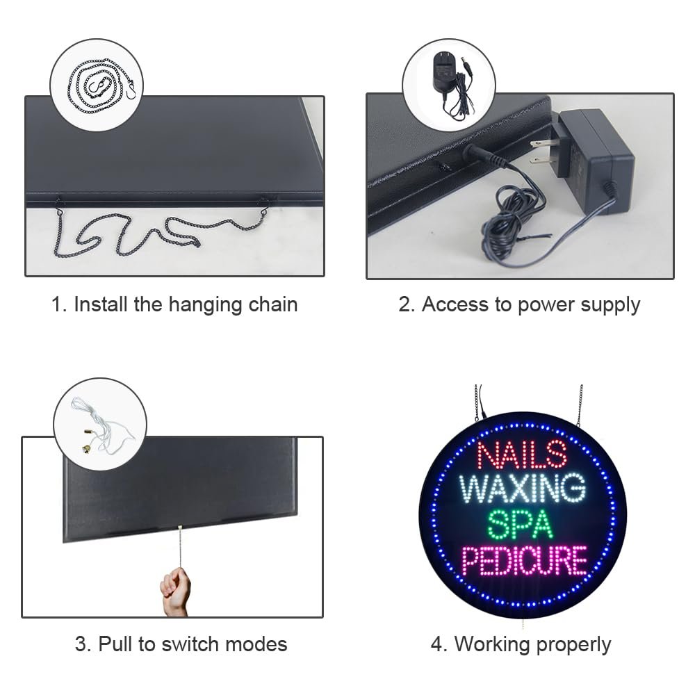 • ใ€Attention-Grabbingใ€‘This Nails Waxing Spa Pedicure LED Sign is bright and eye-catching, suitable for manicures, body treatments, hair removal, massages, and other beauty salons. Make your business stand out from the competition and attract potential customers.