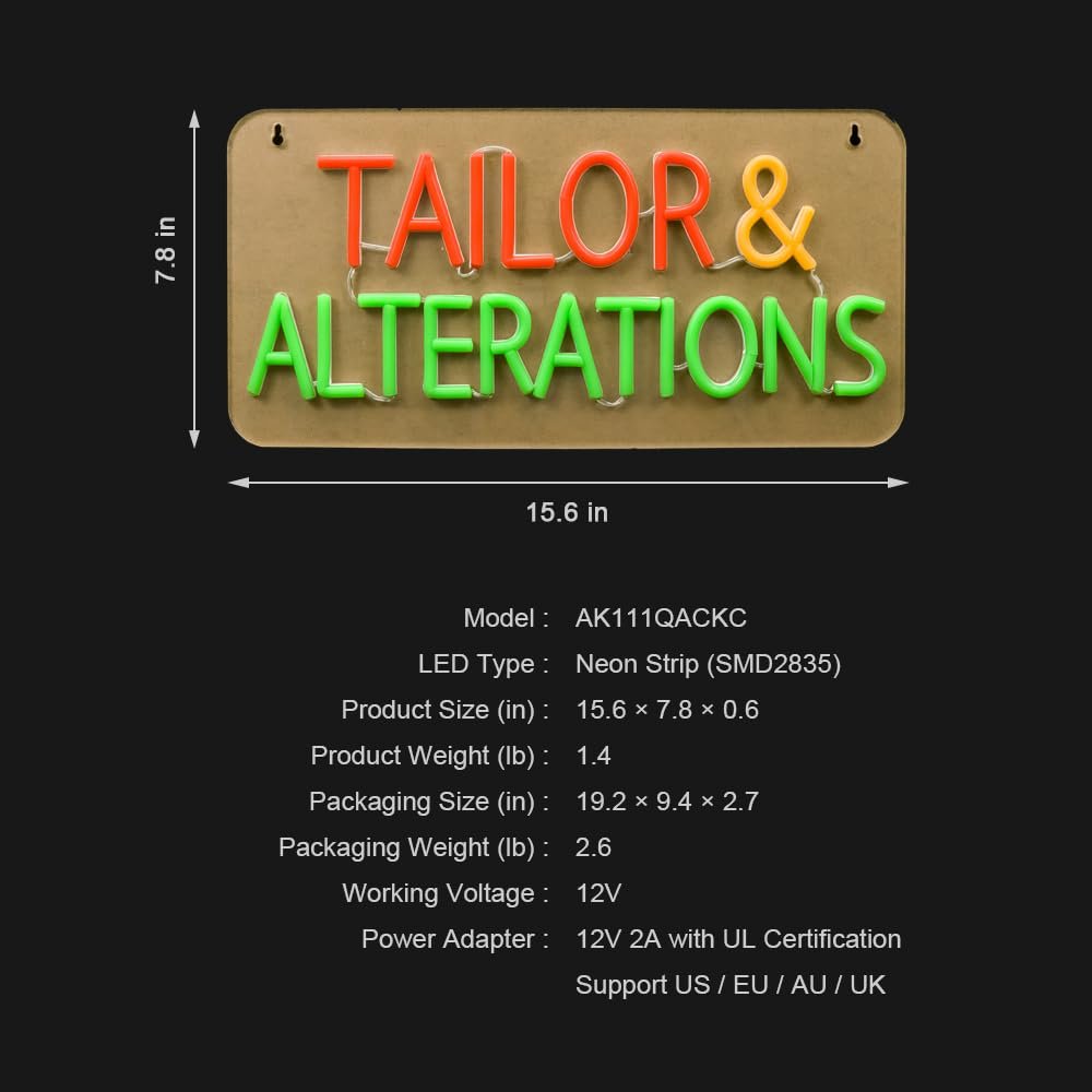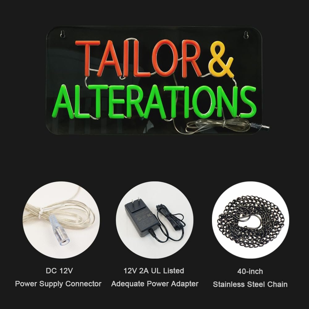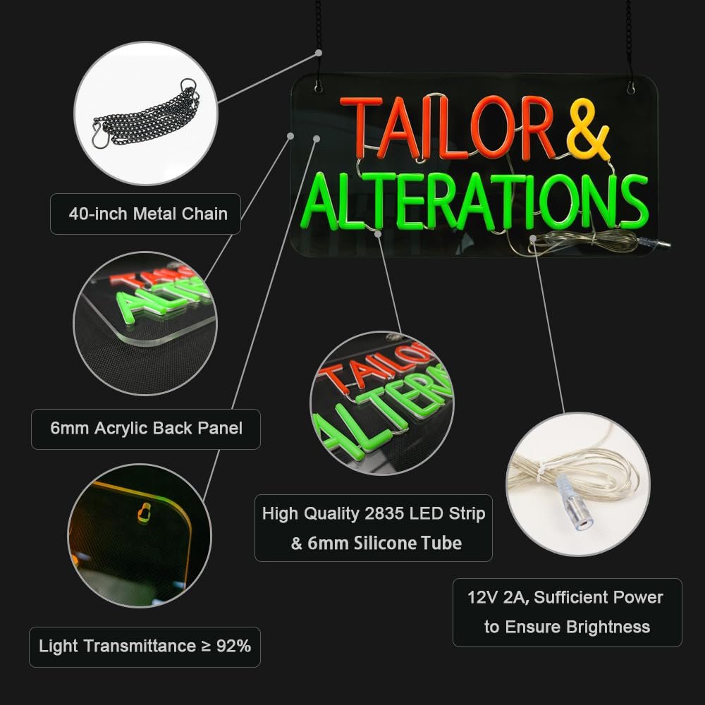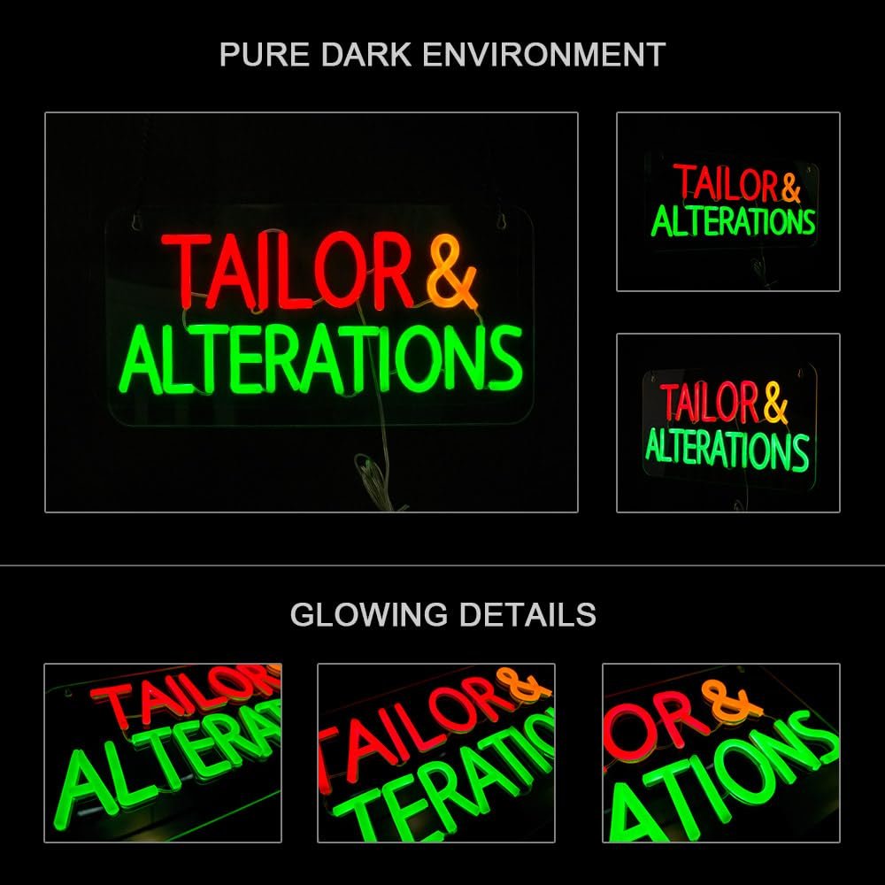 - ใAttention-GrabbingใThis Tailor Alterations LED Neon Sign is bright and eye-catching, suitable for stores offering custom tailoring and alterations Services. Make your business stand out from the competition and attract potential customers.